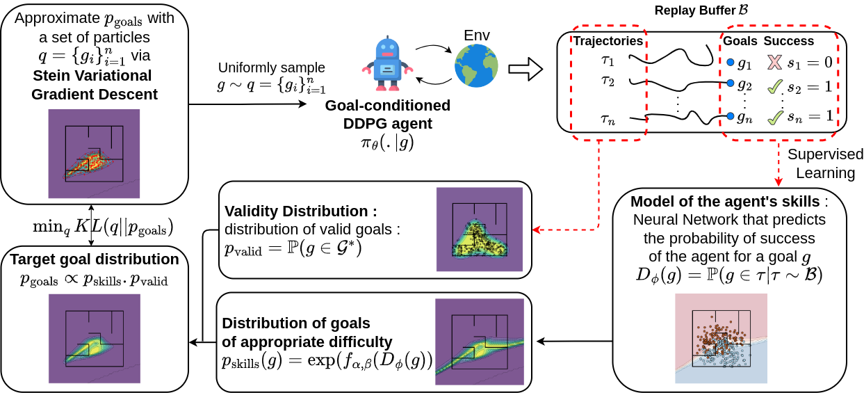 I recently obtained a Ph.D. in Reinforcement Learning at The “Institut des Systèmes Intelligents et de Robotique” (ISIR) in Sorbonne Université (Paris), within the MLIA team. I was supervised by Olivier Sigaud (ISIR, Sorbonne Université) and Sylvain Lamprier (LERIA, Université d’Angers, ex MLIA Sorbonne université). I work on goal-conditionned Deep Reinforcement Learning in continuous environment. Specifically, my objective is to design intrinsically motivated agents that sets their own goals in order to explore and expand their sets of skills. I focus on approaches that need as little prior knowledge on the environment as possible in order to scale to unsupervised settings.